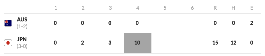 They scored the first run off an error in the first. Their best inning, however, was the third. Australia plated three runs.