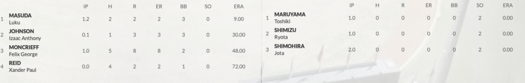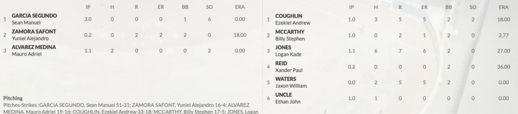 – Brayden George: 1.1IP, 1 H, 2ER, 2BB, 0SO, 27P