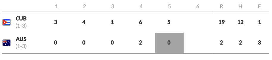 They offense burned the Australians for eleven hits in six offensive innings. Czechia scored twice in each of the first two innings, once in the third, and once in the fifth to power out to a 6-1 lead.