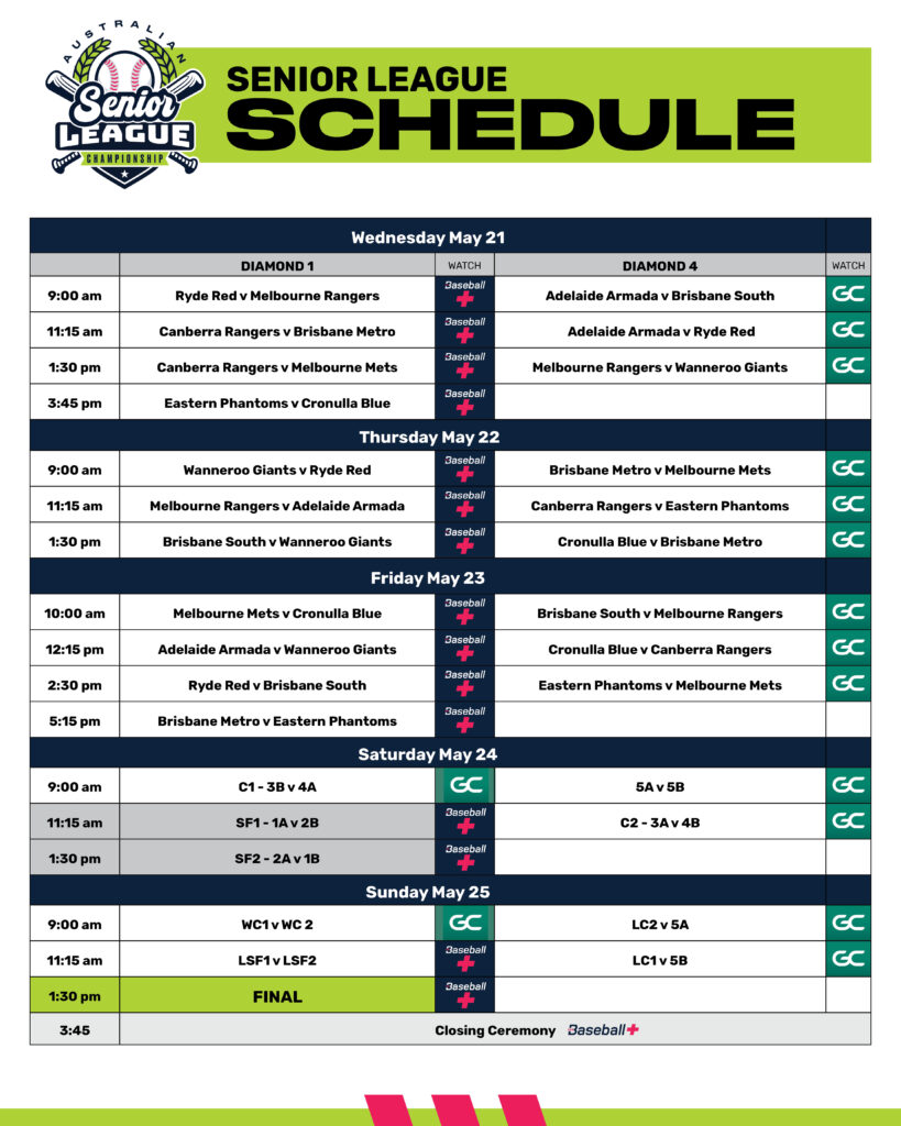 All Baseball+ Broadcast Games will be on the Gold Coast at Surfers, including the finals.