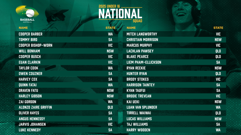 – Assistant Coach – Damian Shanahan: Long-time assistant coach on senior men’s team, U23 World Cup assistant coach, Melbourne Aces assistant coach, Performance Pathways coach with Baseball Victoria;